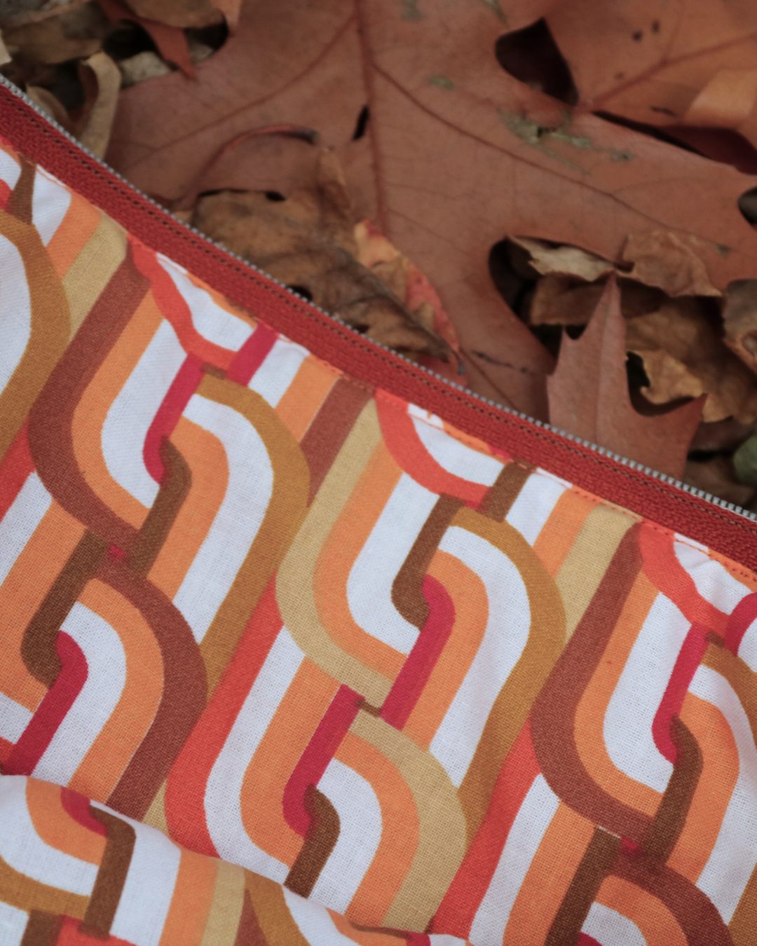 De Glow Pouch is een multifunctioneel make-up tasje, met een mosterdgele rits en een buitenkant van zachte corduroy in warme tinten. De binnenvoering is een feestelijke verrassing: een kleurrijke, speelse print die je elke keer doet glimlachen. Compact en praktisch – voor make-up, kleine spulletjes of als etui. Handgemaakt en uniek, zoals jij.