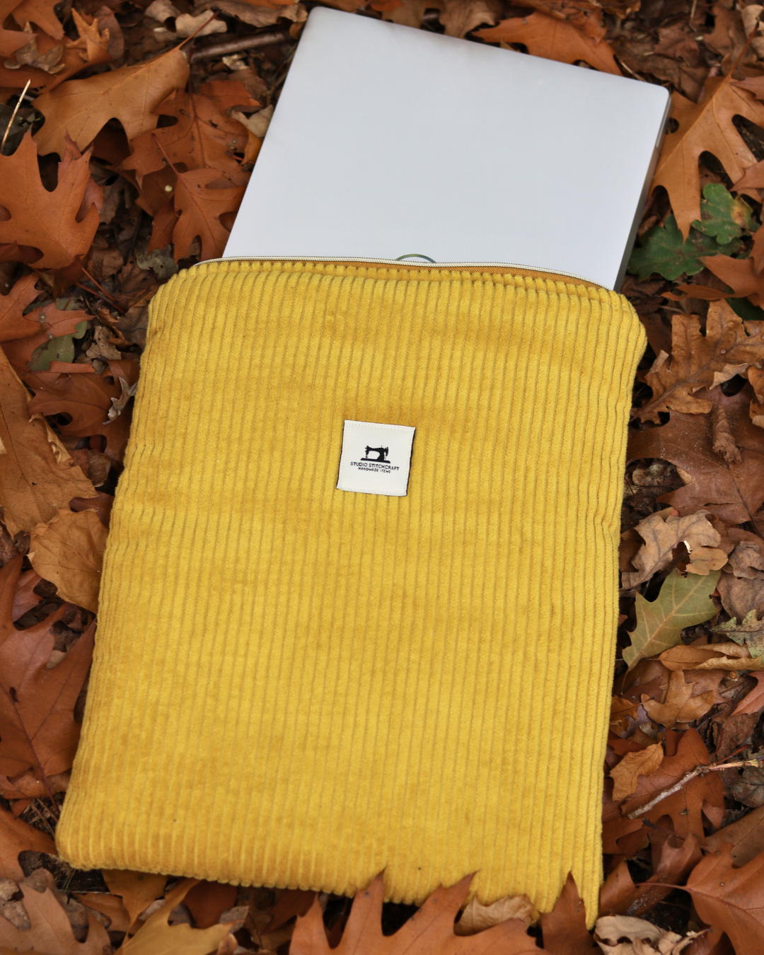 De Golden Carry is een stijlvolle en stevige laptophoes, met een okergele corduroy buitenstof en een verrassend kleurrijke voering. De tas is volledig gevoerd en verstevigd, zodat jouw laptop veilig blijft onderweg. Dankzij de ritssluiting open en sluit je de tas gemakkelijk. De laptoptas past precies in de Sunset Tote uit dezelfde collectie. De perfecte mix van retro en modern.