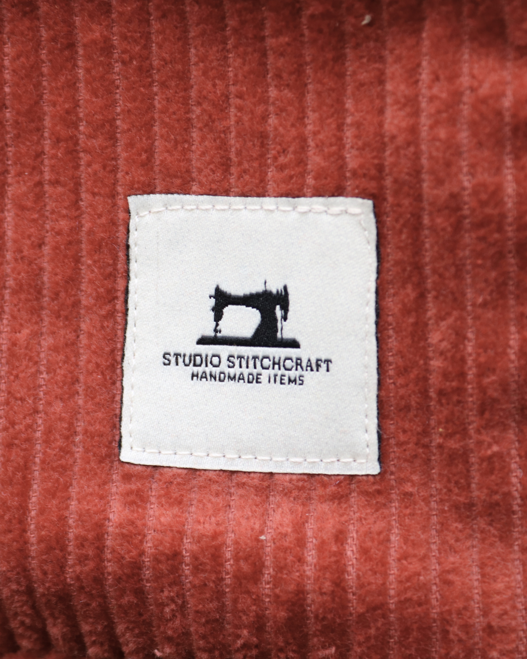De Sunset Tote is een ruime, handgemaakte shopper met een warme, roestbruine corduroy buitenkant en een vrolijke jaren 70 vibe aan de binnenkant. De tas is verstevigd met vlieseline, waardoor hij mooi in vorm blijft. De Sunset Tote beschikt over zowel een handig binnenvak als een buitenvak, perfect voor je telefoon, sleutels of notitieboekje. De magnetische sluiting zorgt voor een stijlvolle en praktische afwerking.
